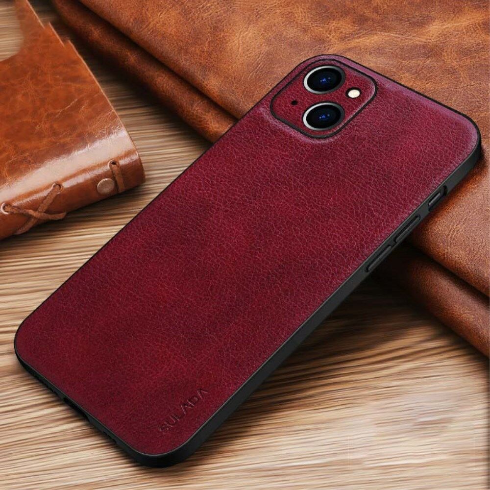 SULADA PC + TPU + PU Leather Phone Cover Phone Case Special Precise Cutout Design for iPhone 13 6.1 inch - Red