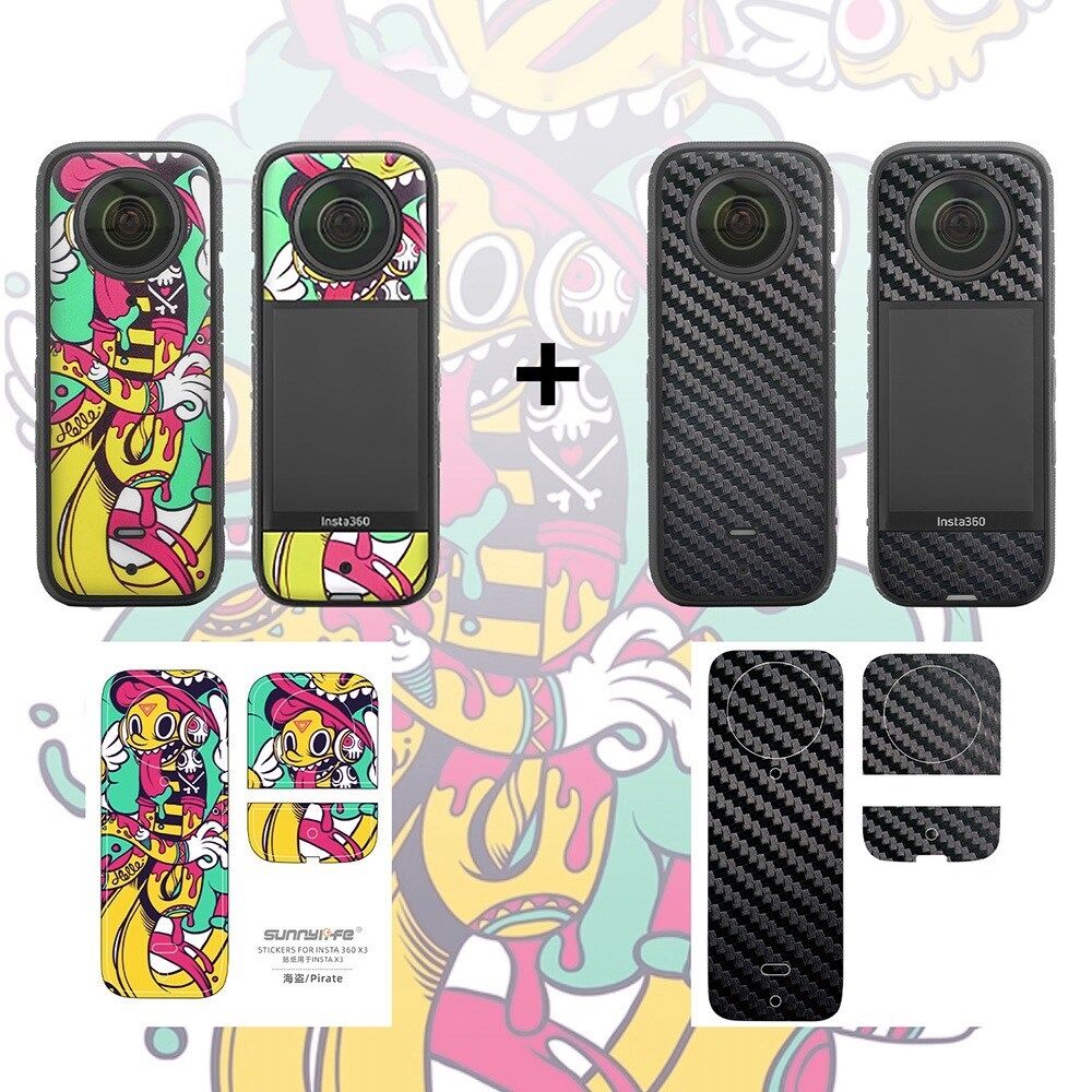 SUNNYLIFE IST-TZ485 For Insta360 X3 Adhesive Cute Pattern PVC Sticker Set Decoration Camera Accessories Kit - Hip-hop / Carbon Fiber