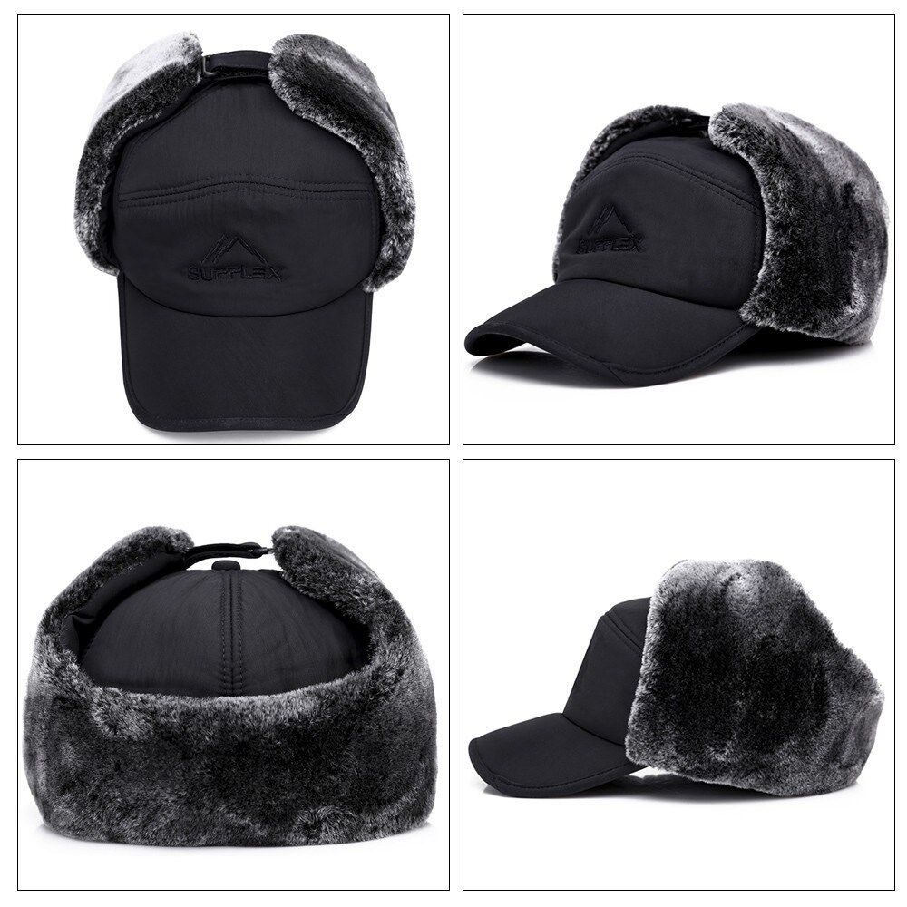 SUPPLEX Winter Warm Hat with Detachable Mask Full Face Outdoor Windproof Hat Baseball Cap - Black
