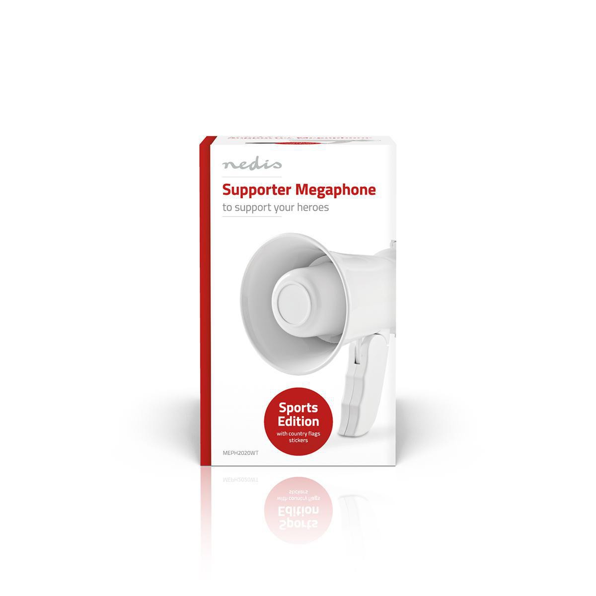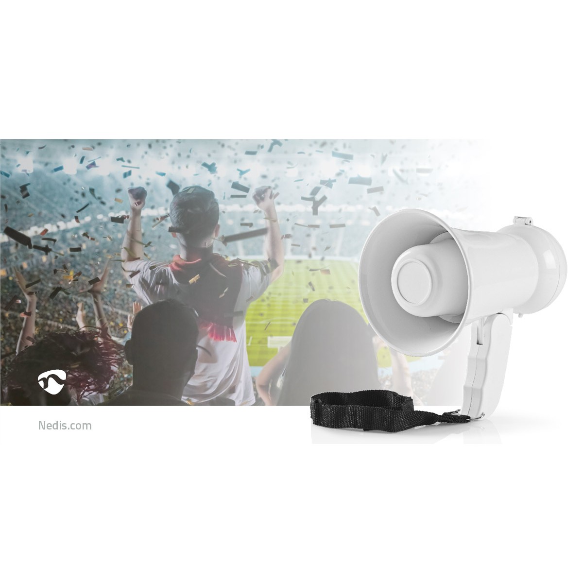 Support your heroes with this Nedis® sports edition megaphone. As soon as the battle starts, you can stand out in the crowd and cheer your heroes for a convincing victory. The 15 watt megaphone has a sound output of 100 decibels, which corresponds to a signal range of 100 meters, so your message will certainly reach your team. When your team scores, you can press the button with the built-in celebration sound. And you don't have to worry about extended playing time: Our megaphone is compact and light enough for use throughout the game, without getting tired of the arms.