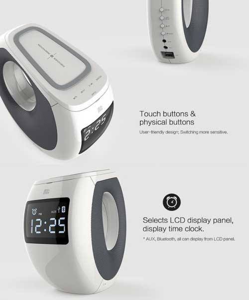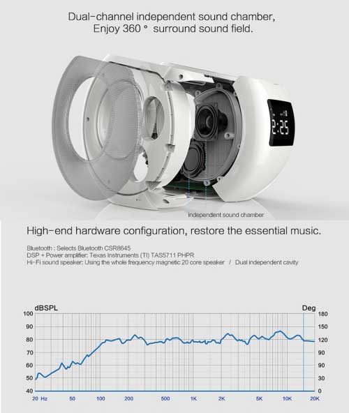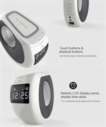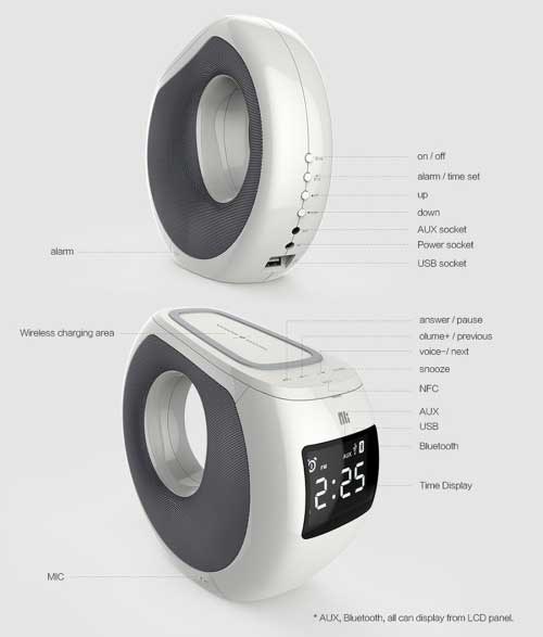 A beautiful and stunning design with many details and features as well as LED display showing the clock. With a host of buttons for features like volume control, hands-free speech and alarm / hour set, it is ideal for use with your Smartphone.