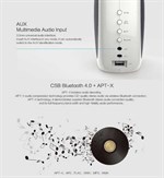 The built-in NFC technology allows you to pair your smartphone or tablet by holding it over the Speaker. The Bluetooth range is up to 10 meters and you can play music via Bluetooth and AUX connection.