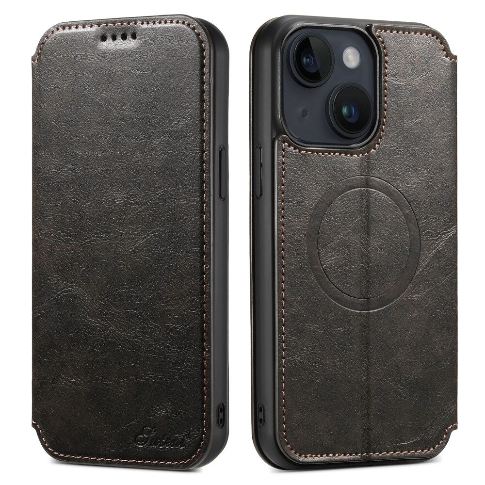SUTENI J05 For iPhone 13 6.1 inch Dustproof Phone Case Stand Wallet Leather Cover Compatible with MagSafe