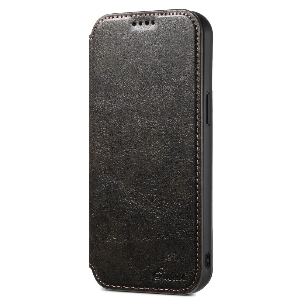 SUTENI J05 For iPhone 13 6.1 inch Dustproof Phone Case Stand Wallet Leather Cover Compatible with MagSafe - Black