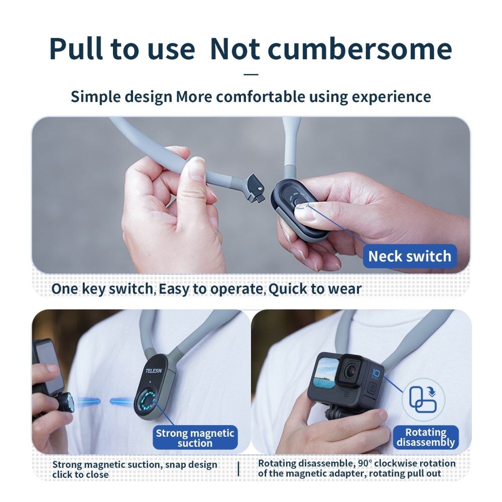 TELESIN TE-HNB-001 Action Camera Neck Mount Magnetic Mount for GoPro Hero 10 9 8 7 Insta360 GO 2