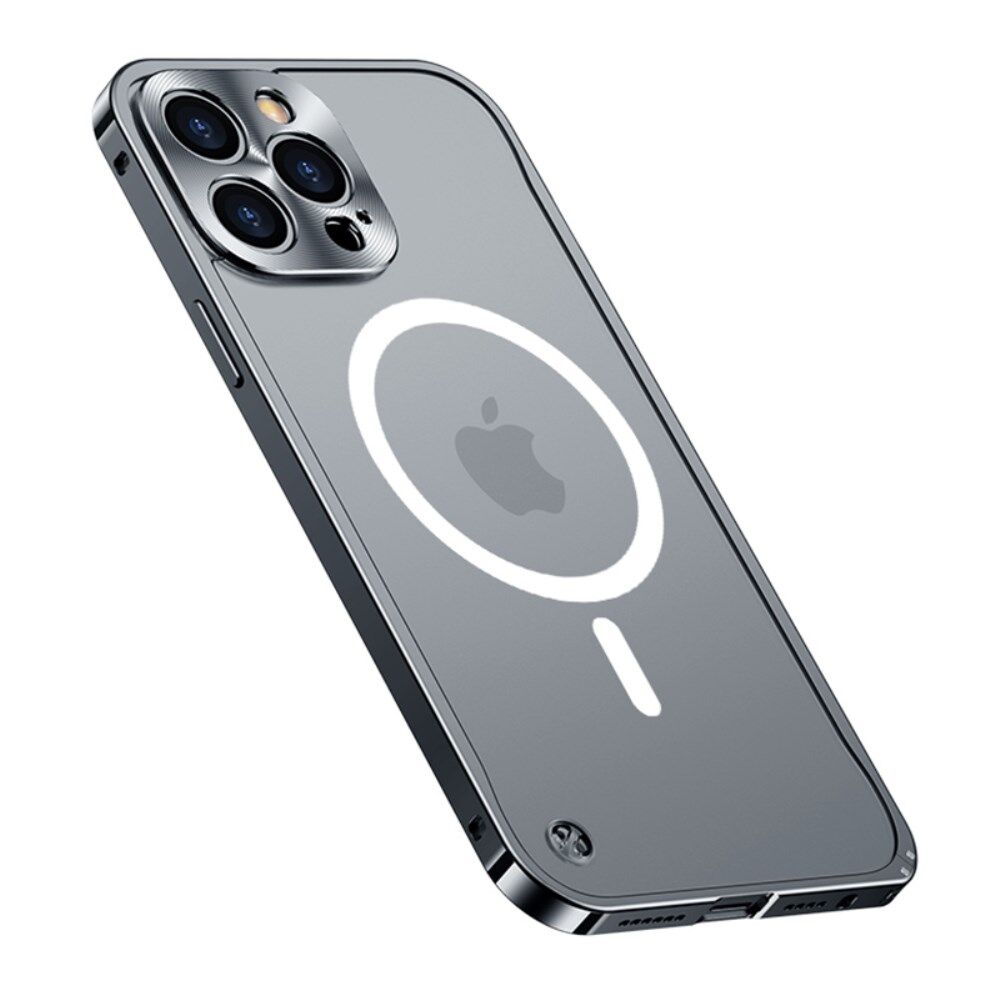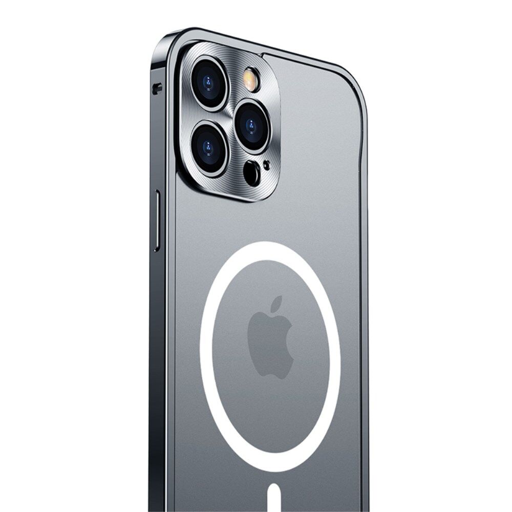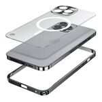 Tempered Glass + Metal Hybrid Scratch-resistant Phone Case Matte Transparent Protective Cover with Magnetic Wireless Charging Feature for iPhone 13 mini 5.4 inch