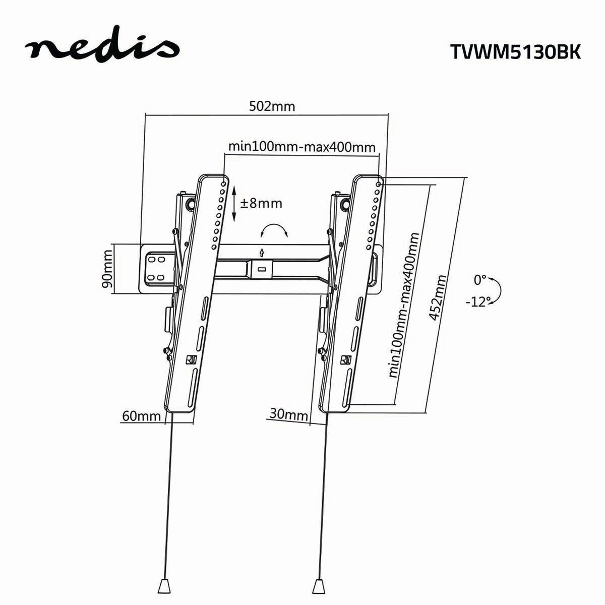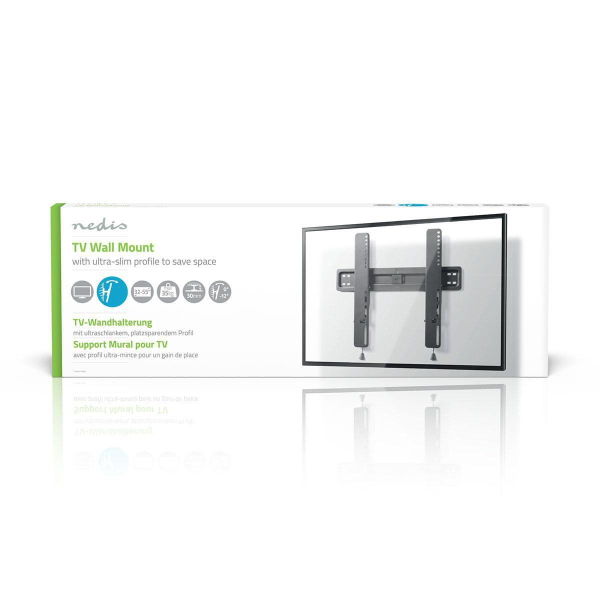 This ultra-slim and tiltable TV wall bracket from Nedis® is an easy way to mount the TV just 30 mm from the wall and achieve the perfect angle thanks to the 12 ° tilt function.