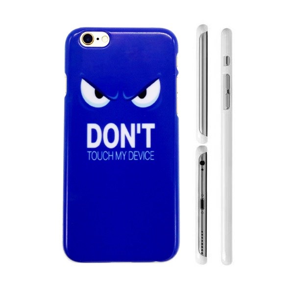 Blue cover with inscribed "Dont touch my device" and some warning eyes.