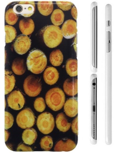 Mobile cover with image of stacked tree trunks.