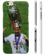 Cover with a happy Ronaldo, balancing with the trophy on his head.