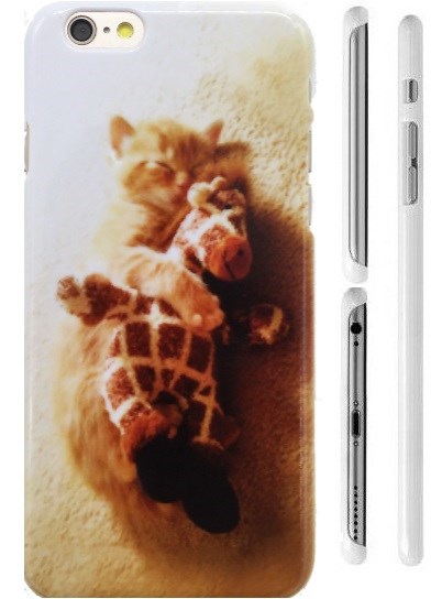 Mobile cover, with cute picture of a kitten sleeping with a teddy bear.