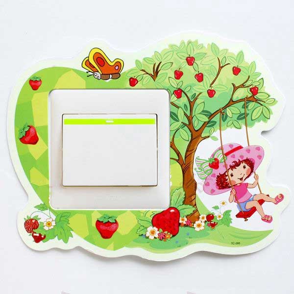 TipTop Wallstickers 17x21cm Cute Girl Play on the Swings Pattern Night Light Switch Sticker