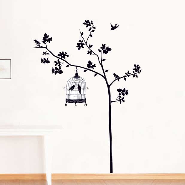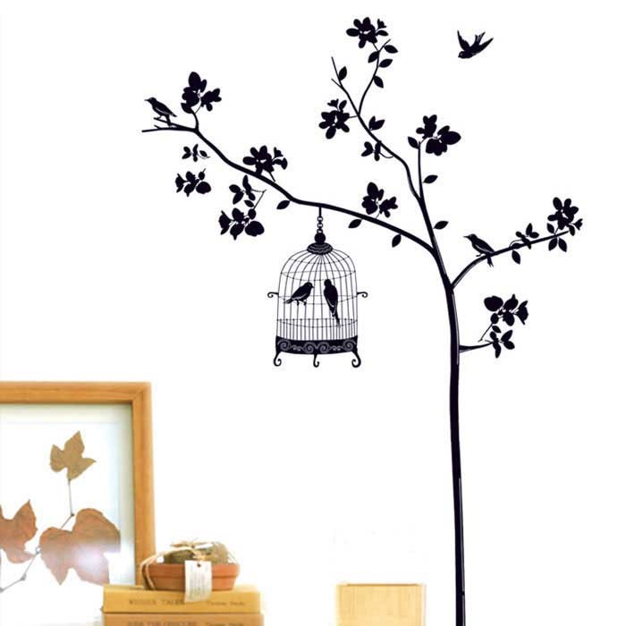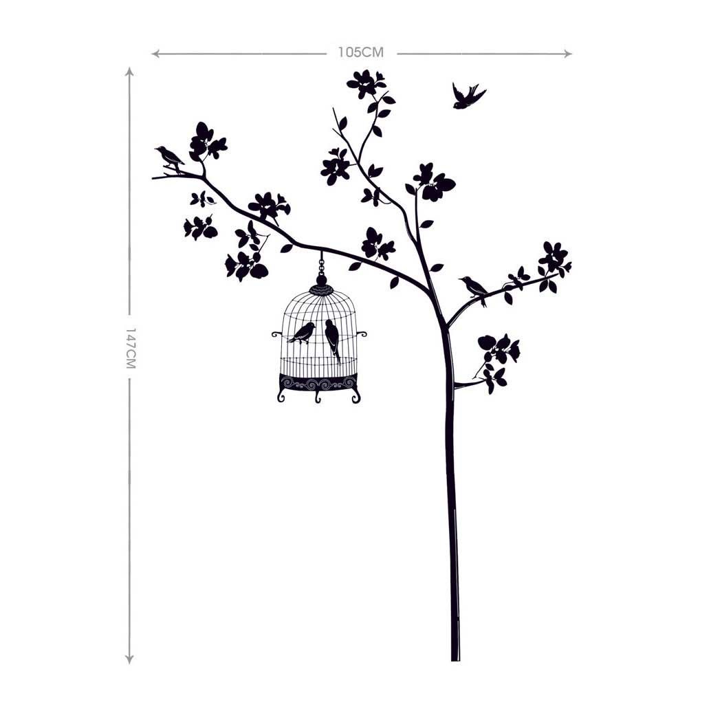 TipTop Wallstickers Black Tree & Birdcage Pattern