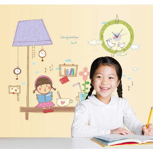 TipTop Wallstickers Cartoon Girl & Clock Pattern