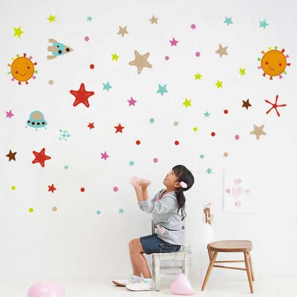 TipTop Wallstickers Cartoon Stars & Sun & Spacecraft Pattern