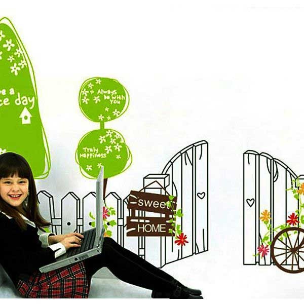 TipTop Wallstickers Cartoon Tree and Fence