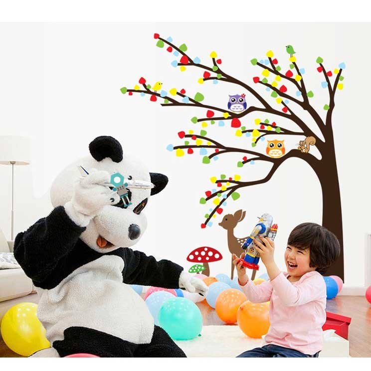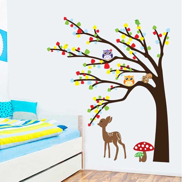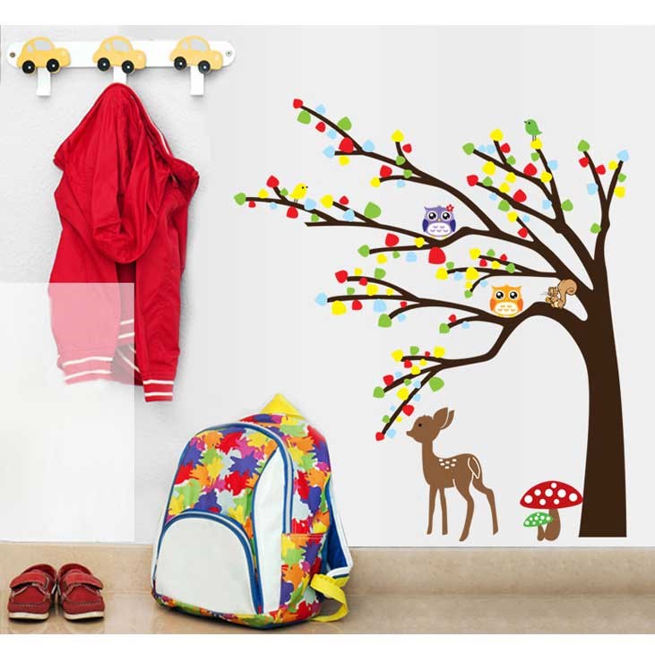 TipTop Wallstickers Colorful Tree & Owls & Deer Design Removable PVC Decals Girls Boys Kids Room