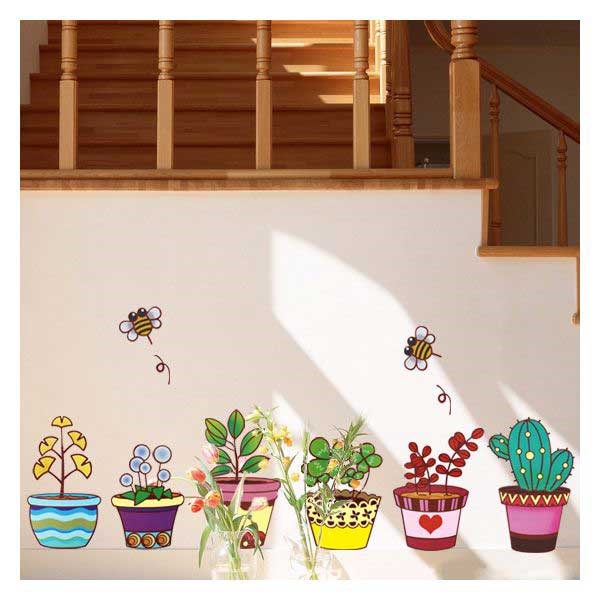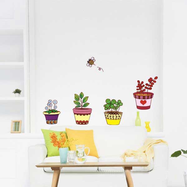 TipTop Wallstickers Colorized Pot Plant Flowers Design