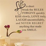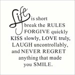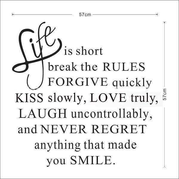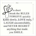 TipTop Wallstickers! "Life is Short Break the Rules .." English Famous Sayings Vinyl