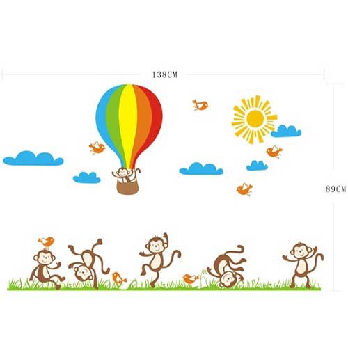 TipTop Wallstickers Lovely Monkey and Hot Air Balloon Design