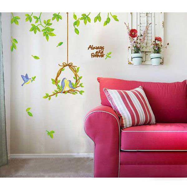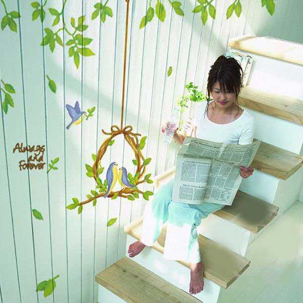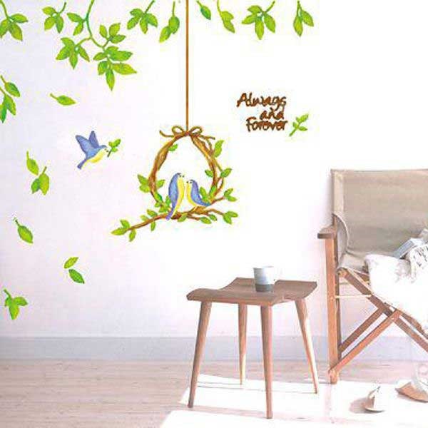 TipTop Wallstickers Spring Birds & Green Leaves Pattern