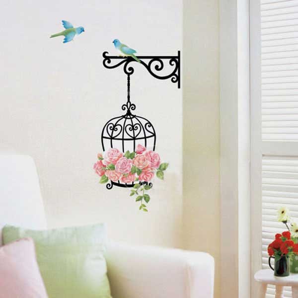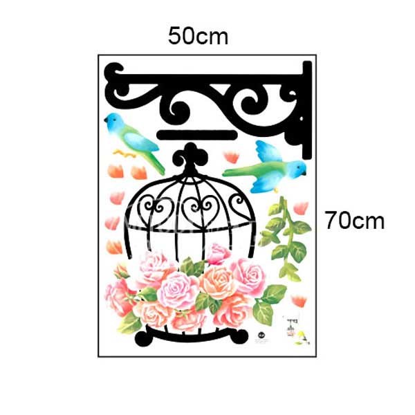 TipTop Wallstickers Vivid Birds and Black Birdcage Pattern