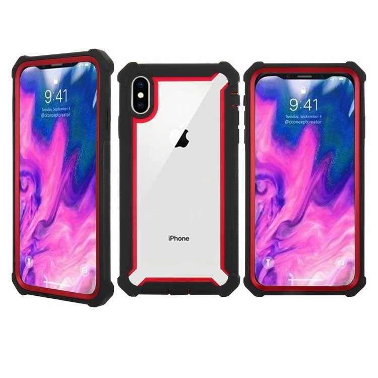 Transparent Cover with shock-resistant edges in TPU for iPhone XS Max - Black / Red