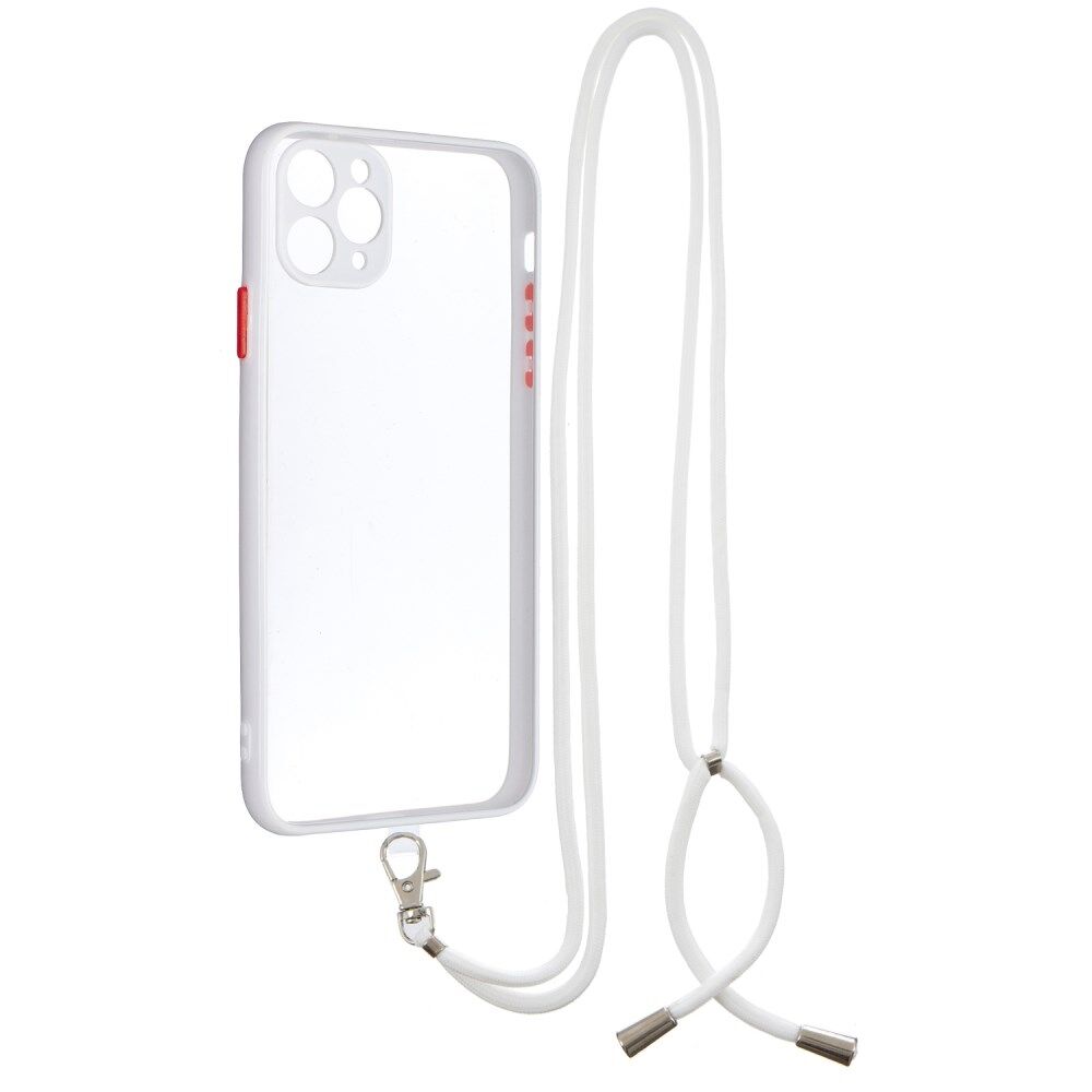 Transparent TPU + Acrylic Combo Hybrid Back Phone Cover Shell with Lanyard for iPhone 11 Pro Max 6.5 inch - White