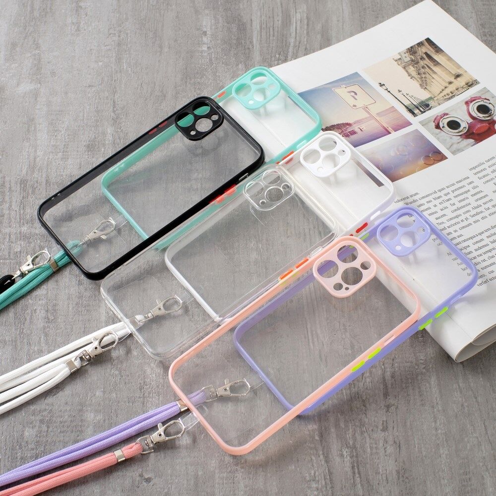 Transparent TPU + Acrylic Combo Hybrid Back Phone Cover Shell with Lanyard for iPhone 11 Pro Max 6.5 inch