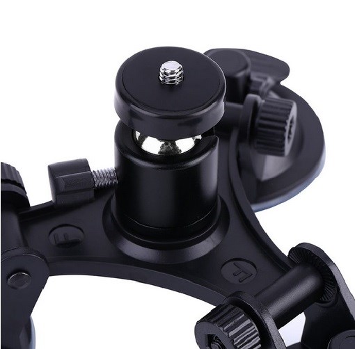 A super patented design with three strong suction cups. The three suction cups provide a secure and stable grip that reduces vibration. The suction cups can be adjusted, which allows the mount to be mounted on smooth, uneven and uneven surfaces. The mount is 360 ° rotatable, allowing for the perfect tilt and angle of your GoPro. Mount it on the car's helmet or roof and get great pictures from home from the party, sporting event or holiday. A lightweight quality design in aluminum with a carrying capacity of 3 kg. With a smartphone holder with 1/4 "thread (not included), you can use your iPhone, Samsung or other Smartphone up to size 5.5". An Adapter is included.