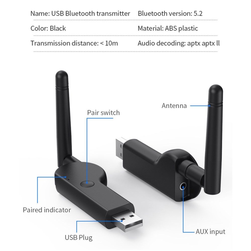 TX19 Bluetooth 5.2 Audio Transmitter USB Adapter with External Antenna for PC TV CD Player