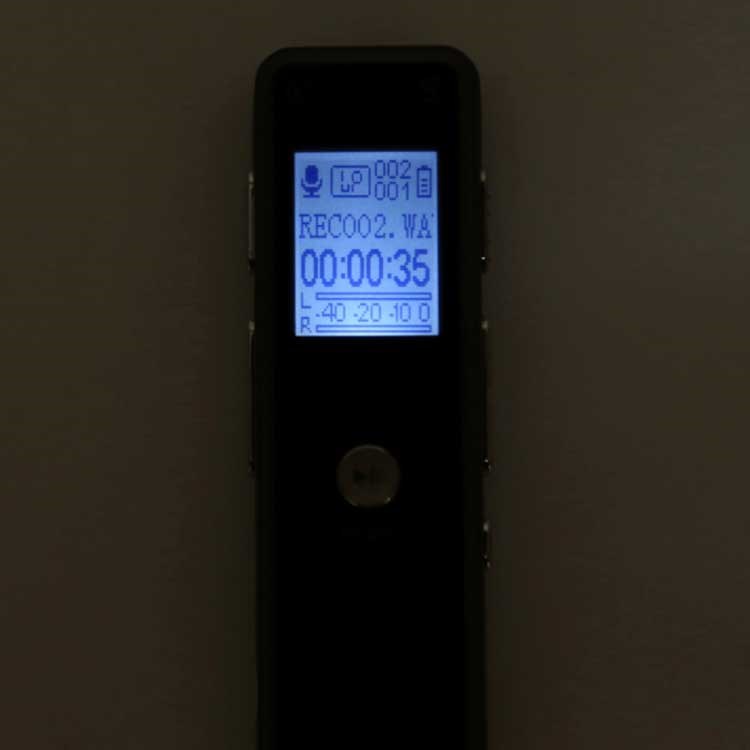 Digital Dictaphone with 8 GB memory, LCD Display and SD card slot.