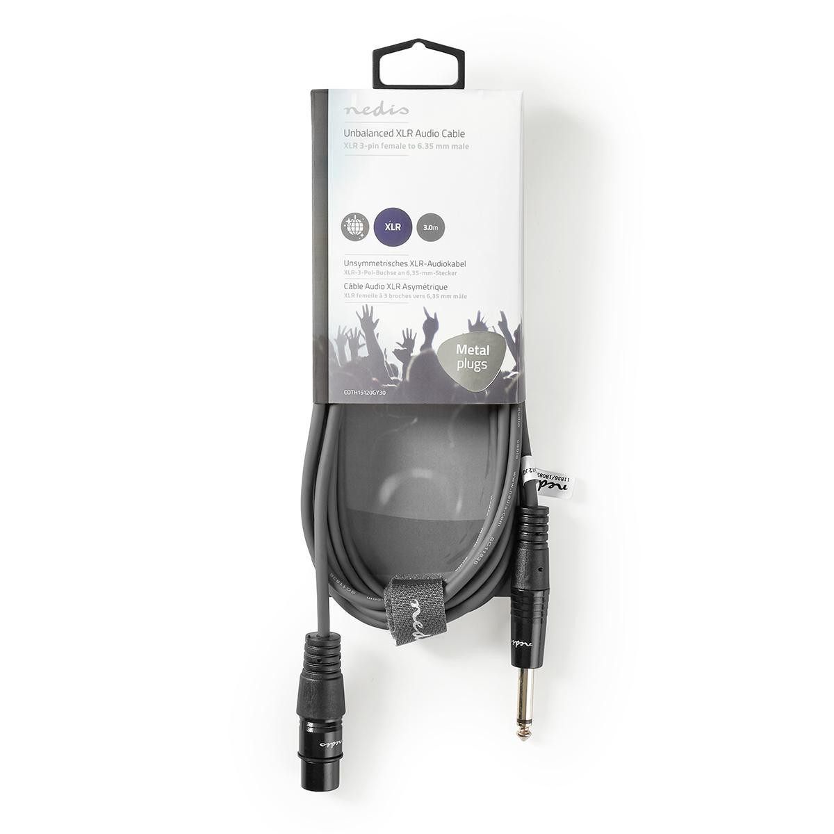 Unbalanced XLR audio cable | XLR 3-pin female connector - 6.35 mm male connector | 3.0 m | gray