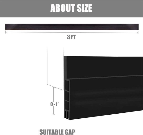 Under Door Draft Stopper Weatherstrip Seal Weather Stripping Door Bottom Seal Strip - Black