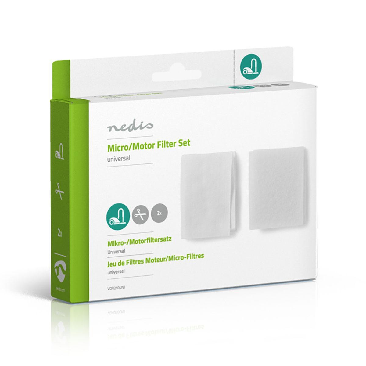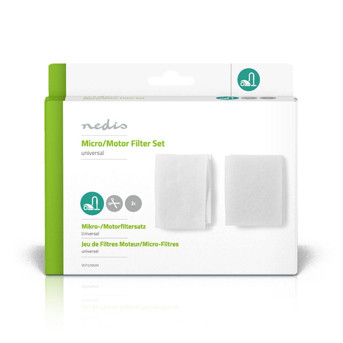 Universal filter set for vacuum cleaner, consists of a micro and a motor filter. The filters can be cut to any size, so they can be adapted to any type of vacuum cleaner.