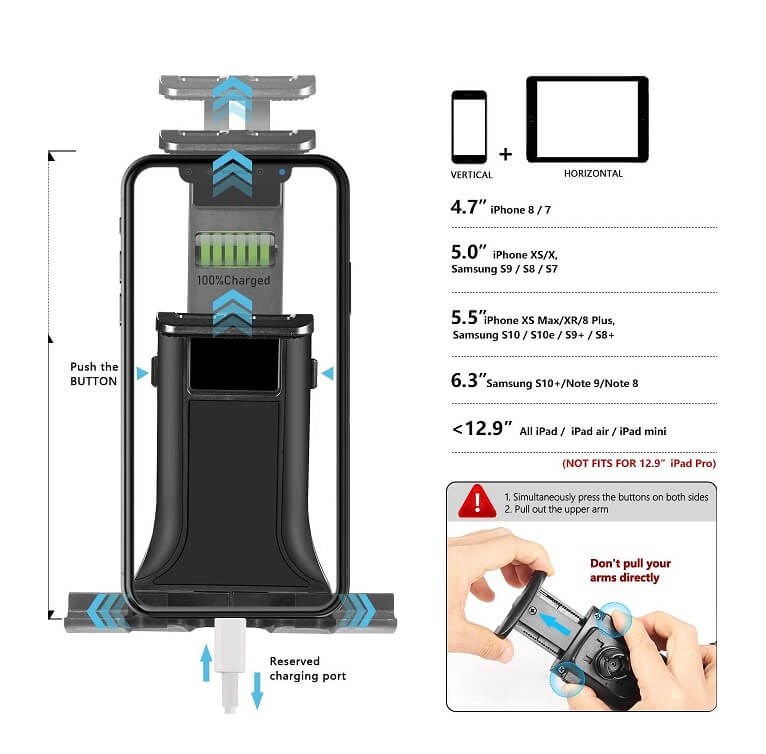 NOTE: Cannot be used on large tablets, such as iPad Pro 12.9 '' or Samsung 10.1