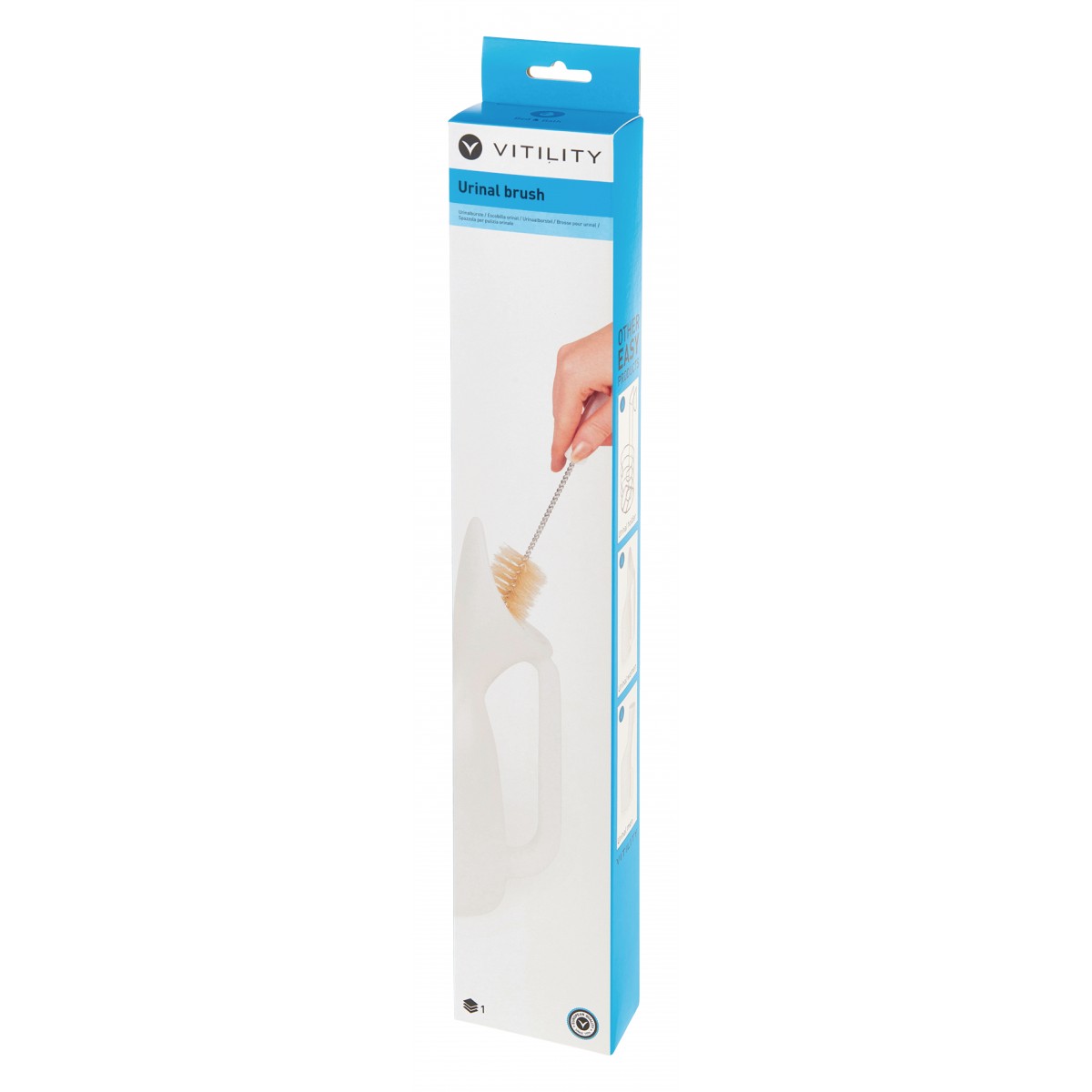 The urinal brush can be used to clean the inside of both male and female urinals thoroughly and hygienically.