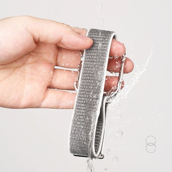 The strap is made of a soft and breathable material, it has a velcro closure that allows for comfortable and quick adjustment.
