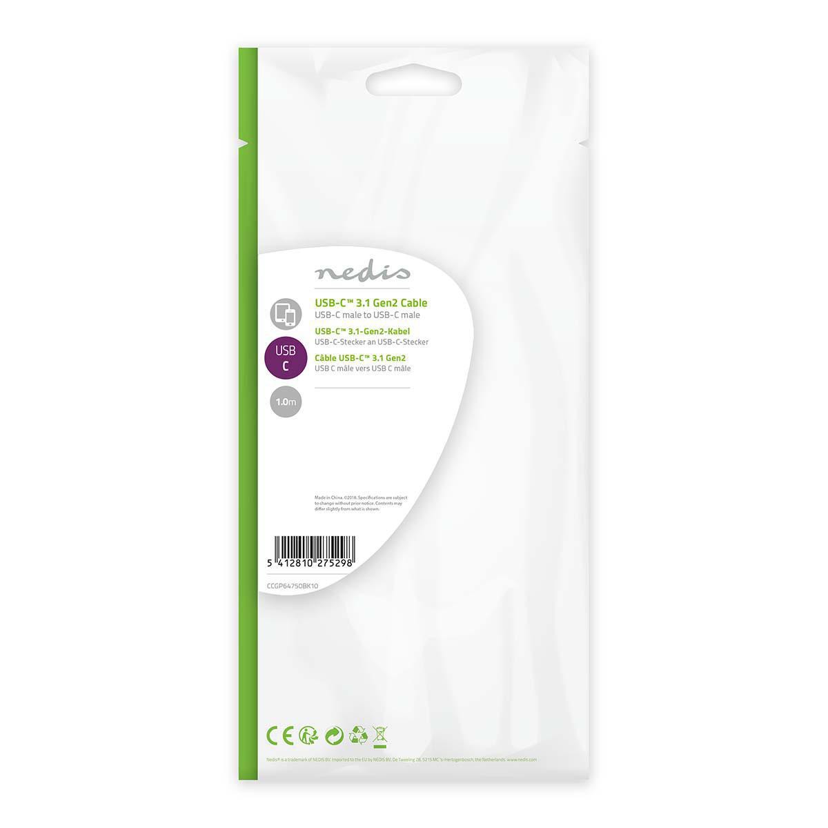 USB 3.1 cable (Gen 2) | Type-C male connector | Type-C male connector | 1.0 m | Black