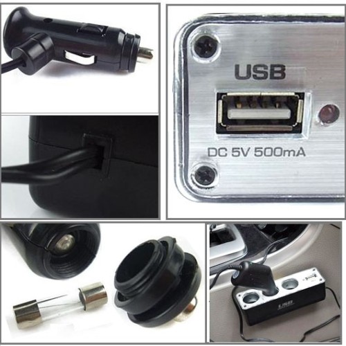 USB charger plug for cigarette lighter in the car - 5 V / 500 Ma. Suitable for mobile phone, iPod, GPS and PDA.