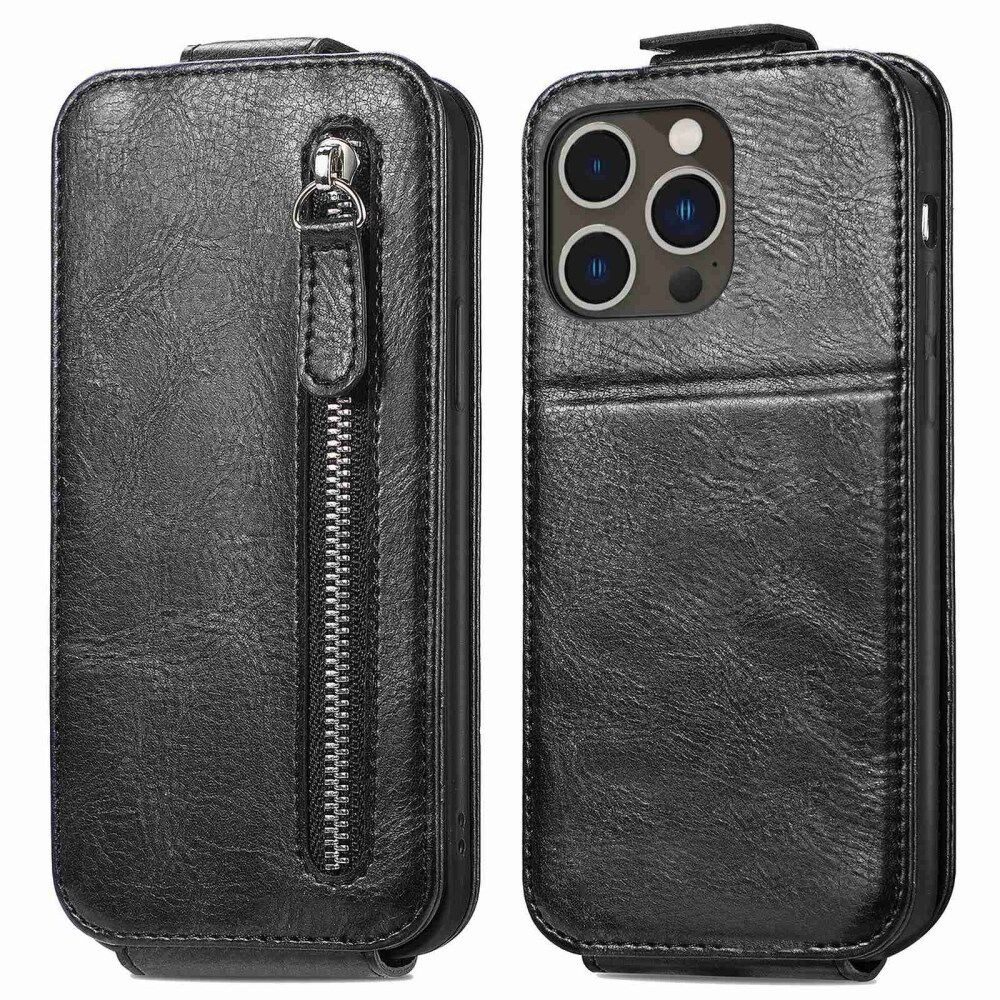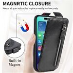 Vertical Flip Zipper Wallet Case for iPhone 14 Pro 6.1 inch, PU Leather Stand Shockproof Phone Cover with Built-in Metal Sheet - Black