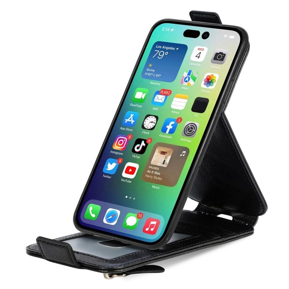 • Vertical-flip type leather case, opens down for easy operation with one hand