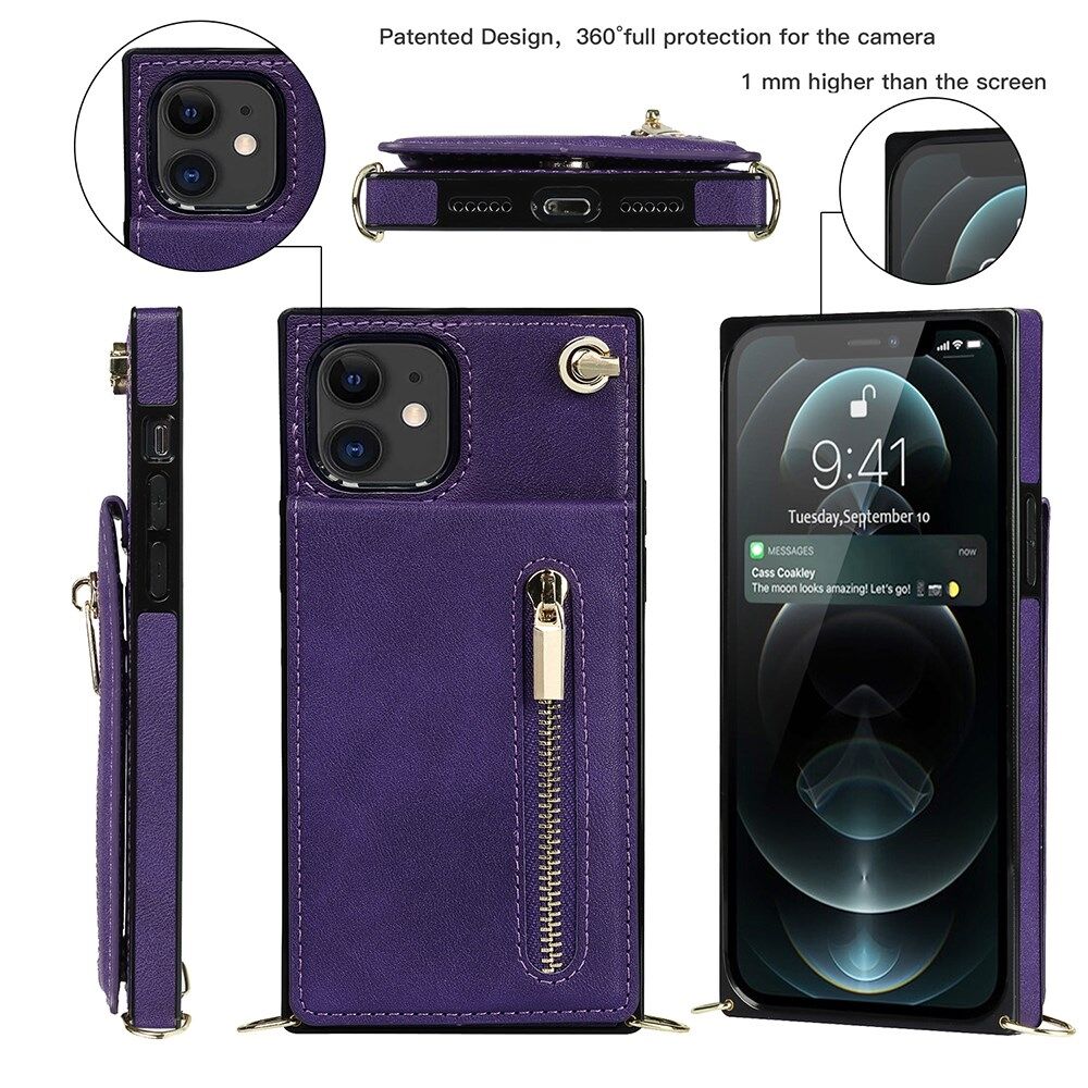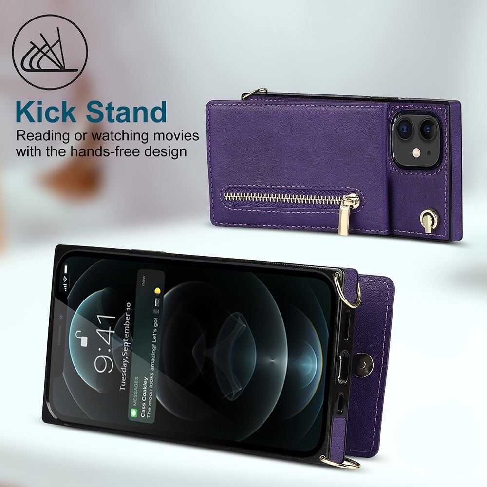 Vertical Flip Zipper Wallet Kickstand Design Leather Phone Hybrid Case with Lanyard for iPhone 11 6.1 inch - Purple