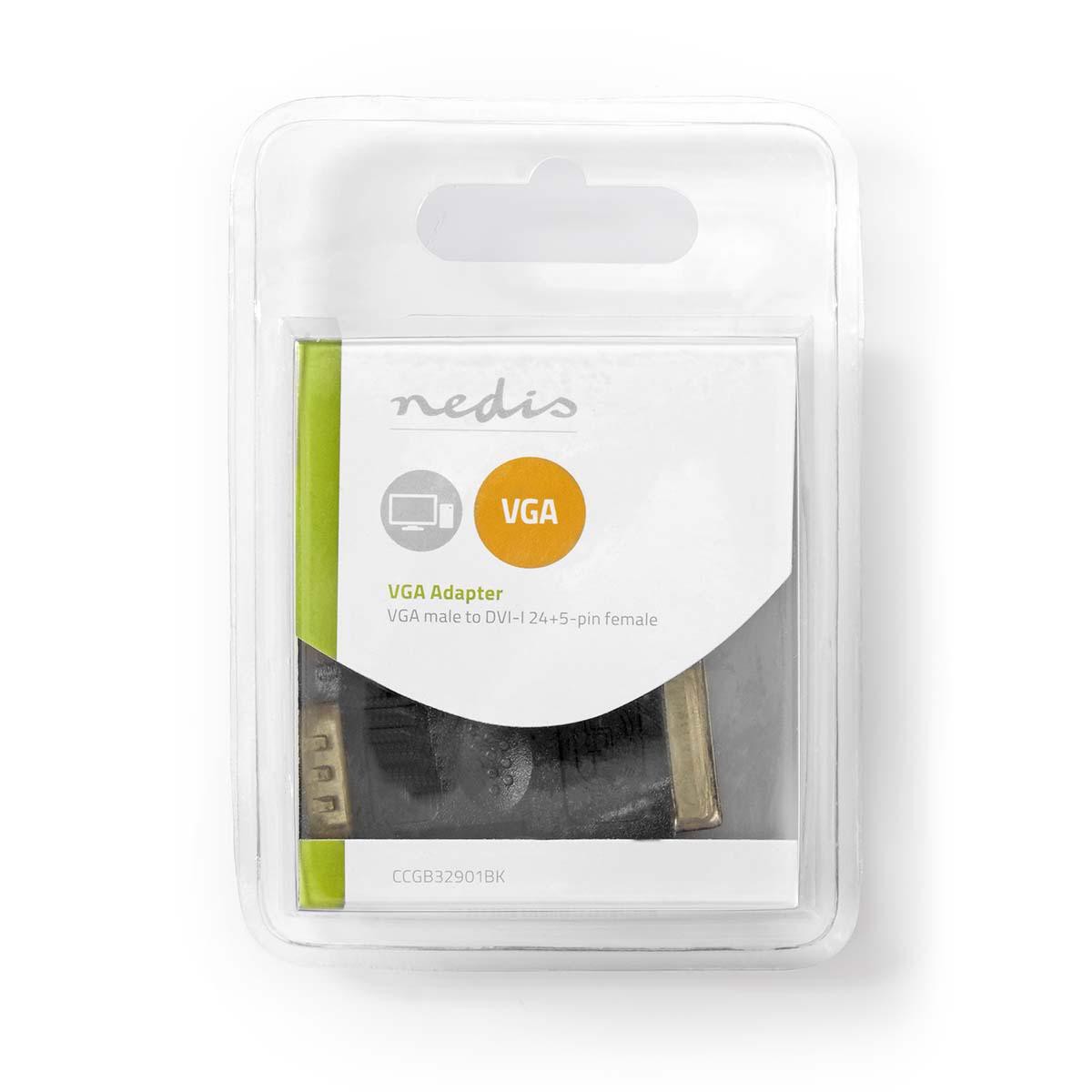 VGA to DVI adapter | VGA connector | DVI-I 24 + female connector with +5 pins | Black
