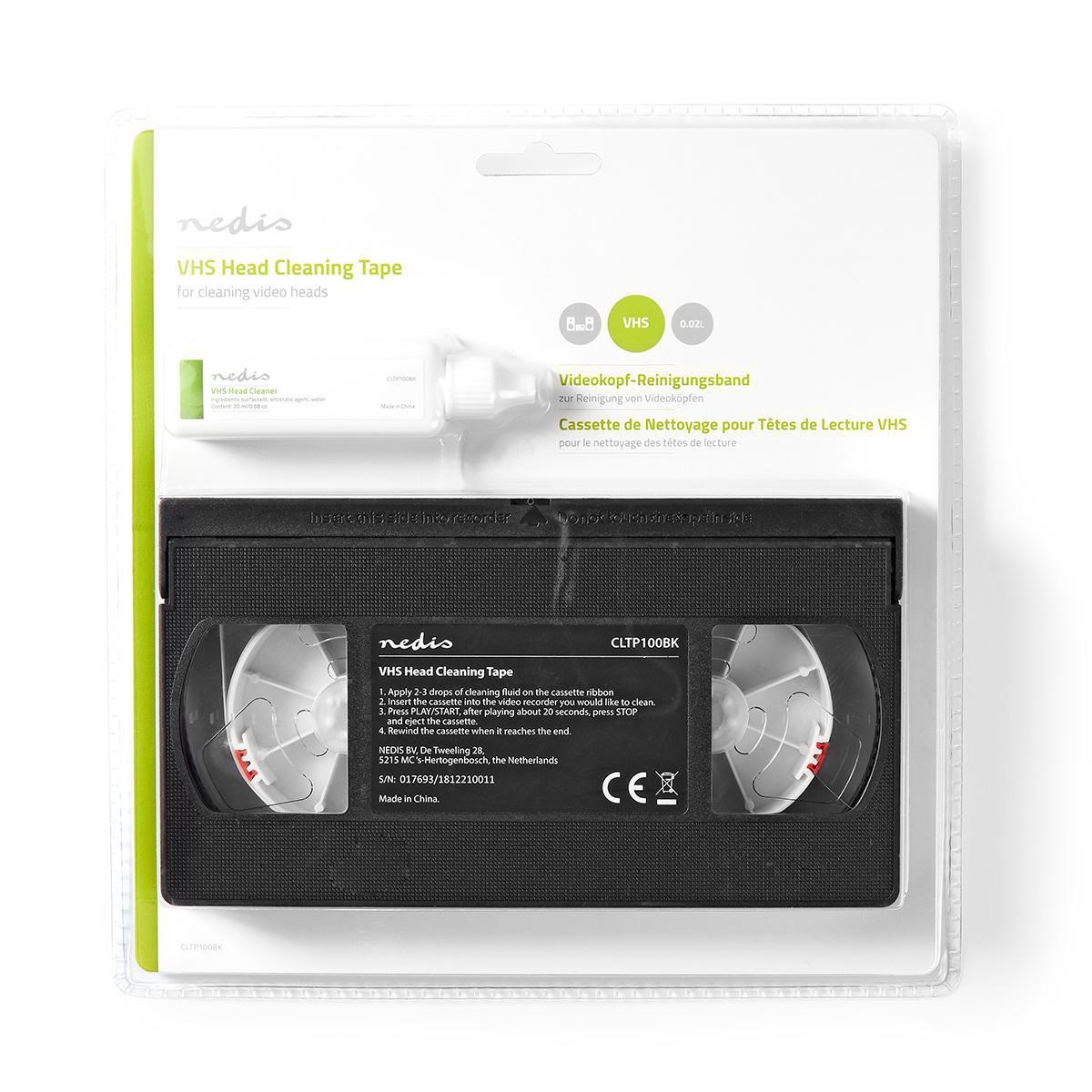This Nedis® VHS cleaning tape ensures that your player works optimally and lasts longer. It is important to keep your VHS heads clean for clear images and sound. The 20 ml bottle of high quality cleaning fluid is a safe and effective way to continue to enjoy your films.