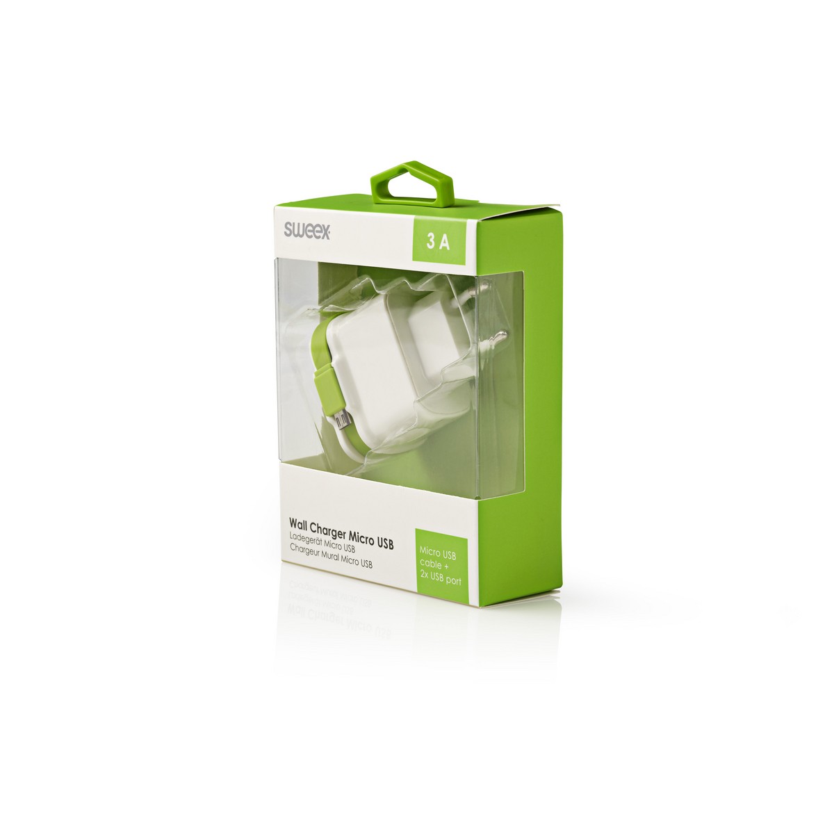 Wall charger 3-outputs 3 A 2 x USB / Micro USB White / Green