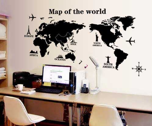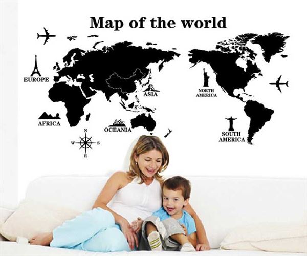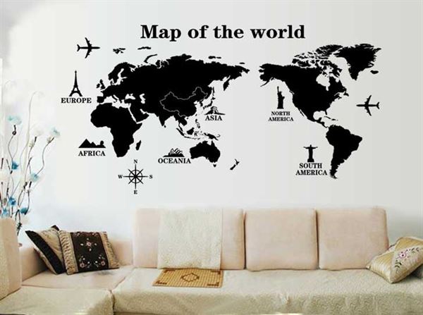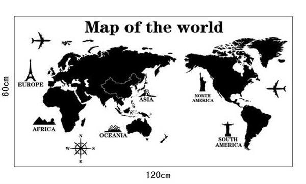 On-Wall Stickers - Map Of The World - 60 x 120 cm