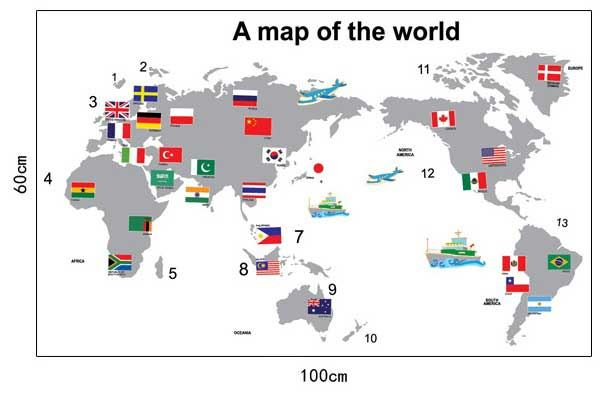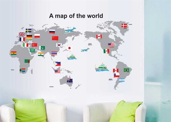 On-Wall Stickers - Map Of The World - 60 x 100 cm