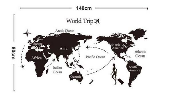 On-Wall Stickers - Map Of The World - 80 x 140 cm