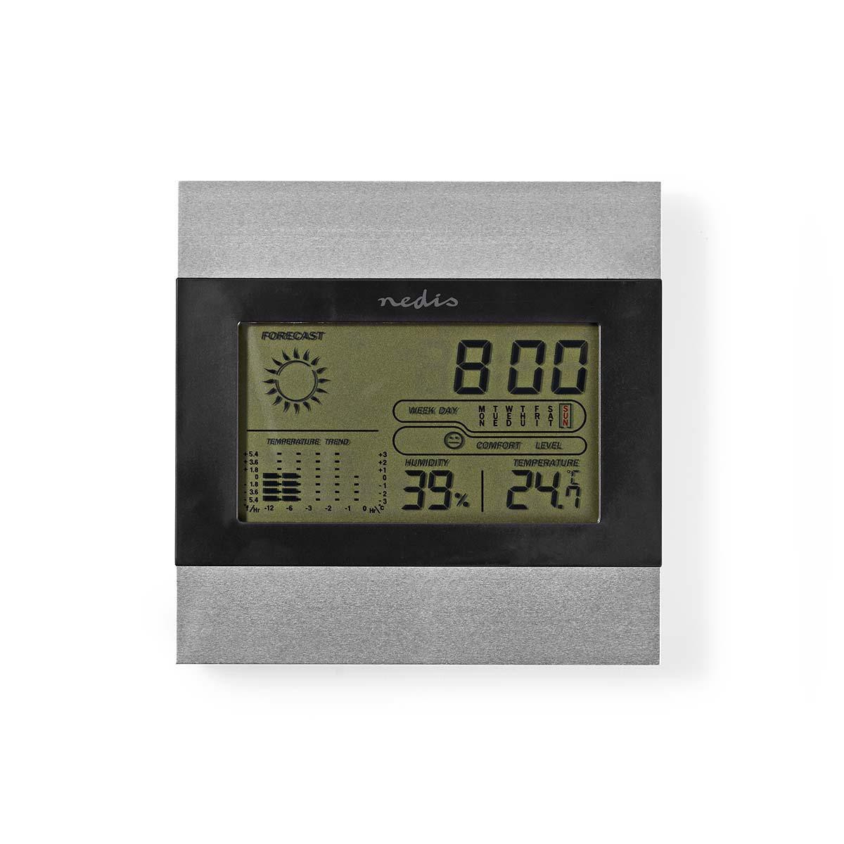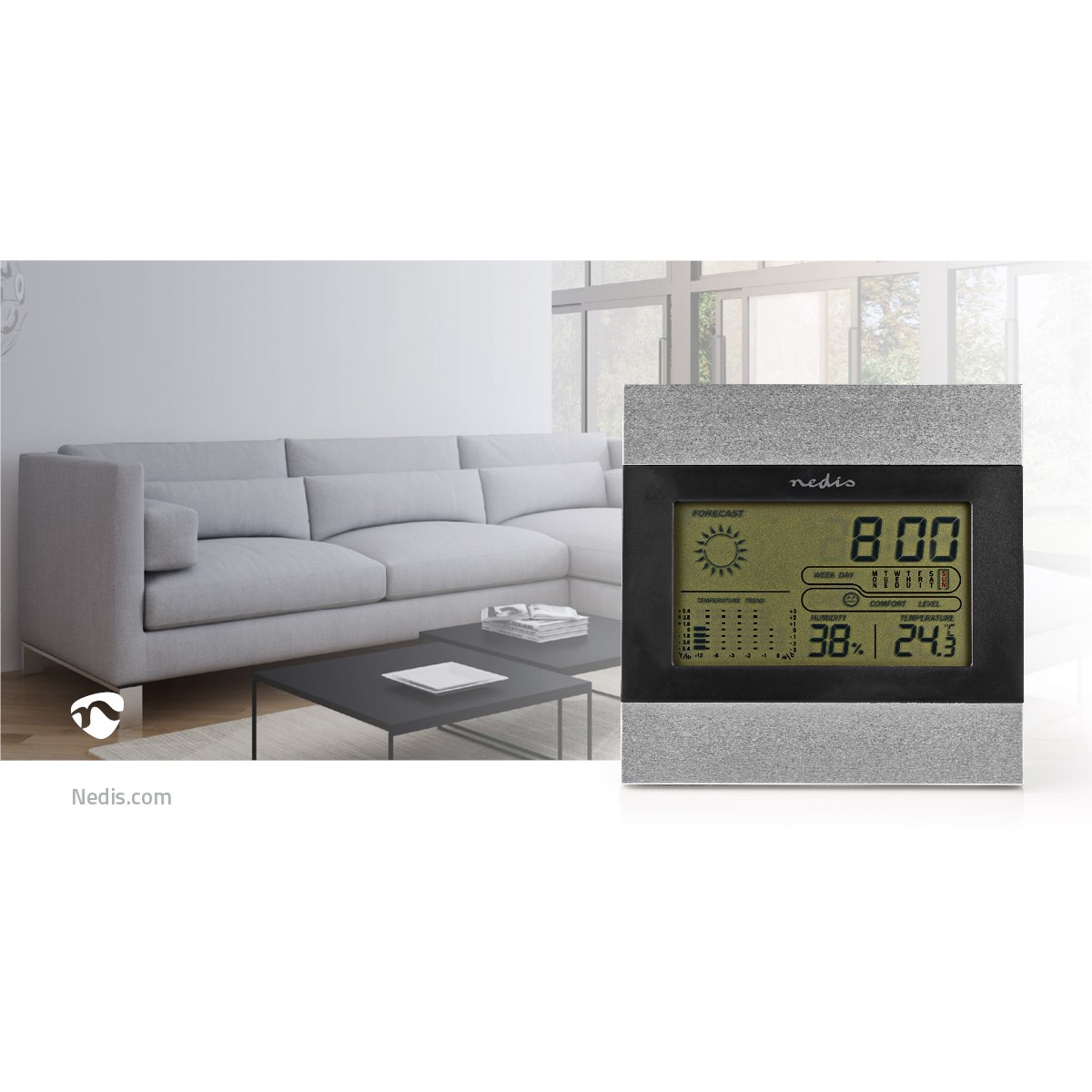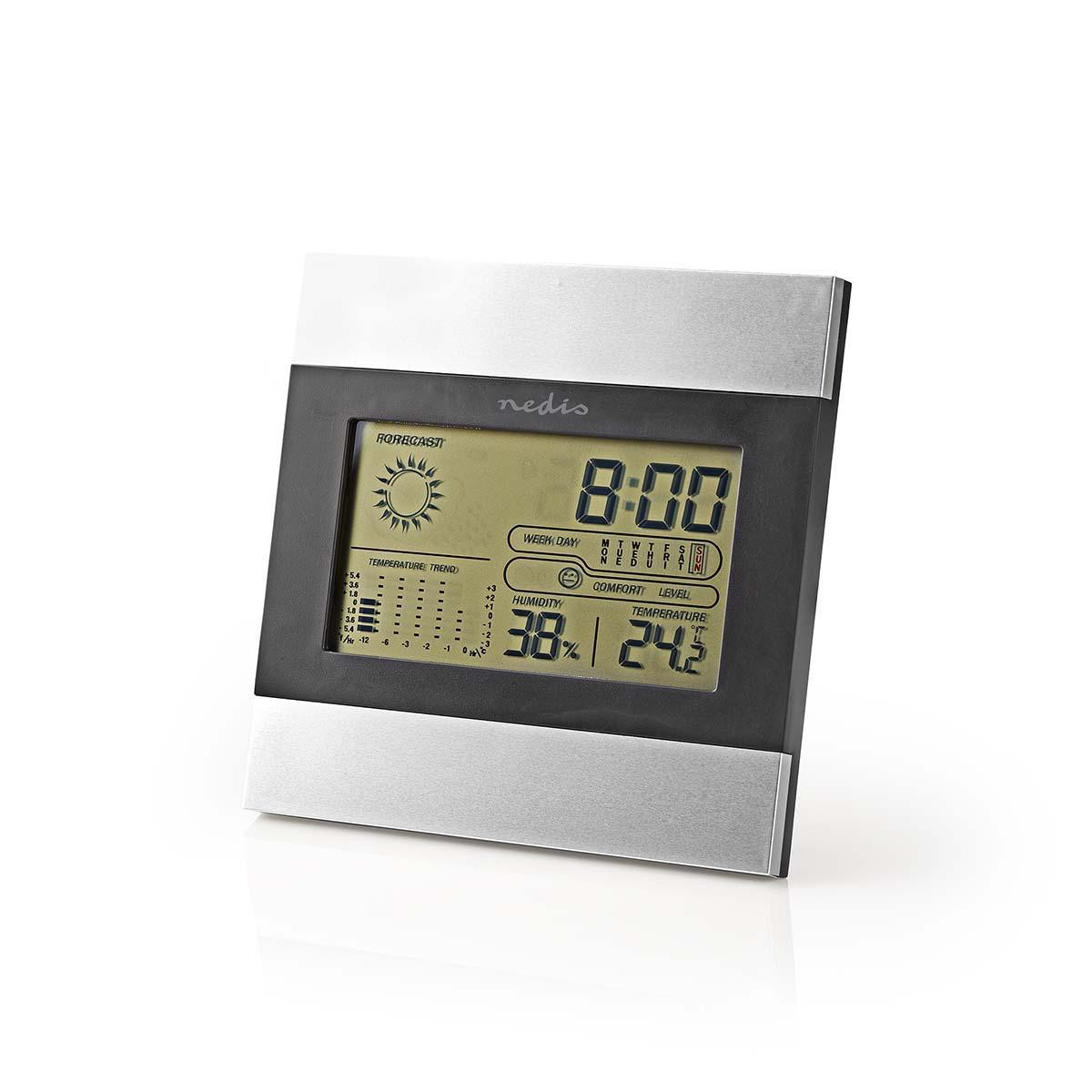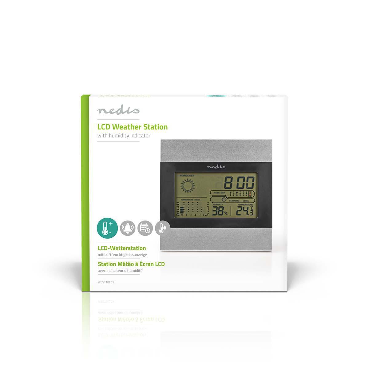 LCD weather station for displaying the latest weather conditions. It is equipped with an alarm with snooze function.